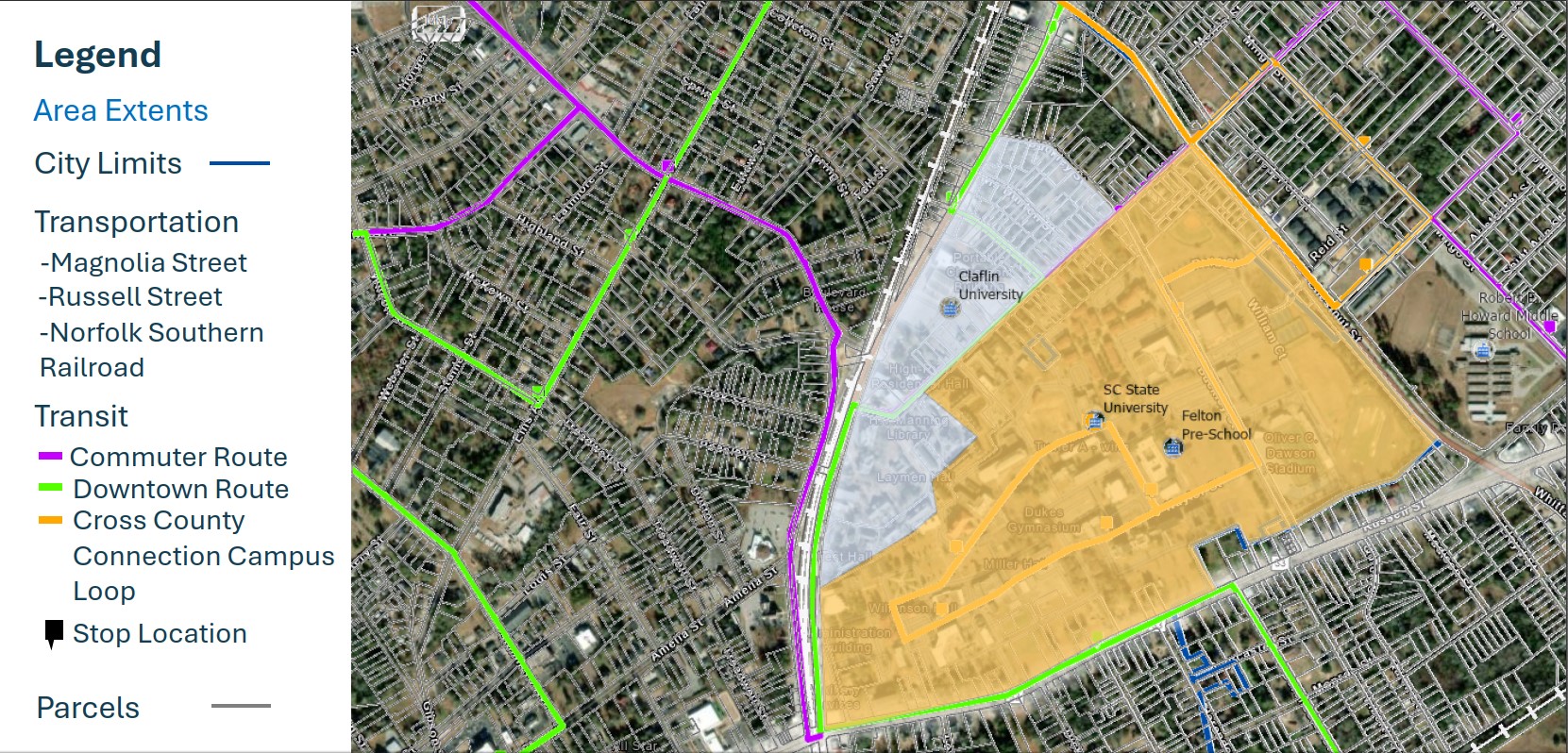 Goals: Provide a safer connection between South Carolina State and Claflin Universities to historical downtown Orangeburg.