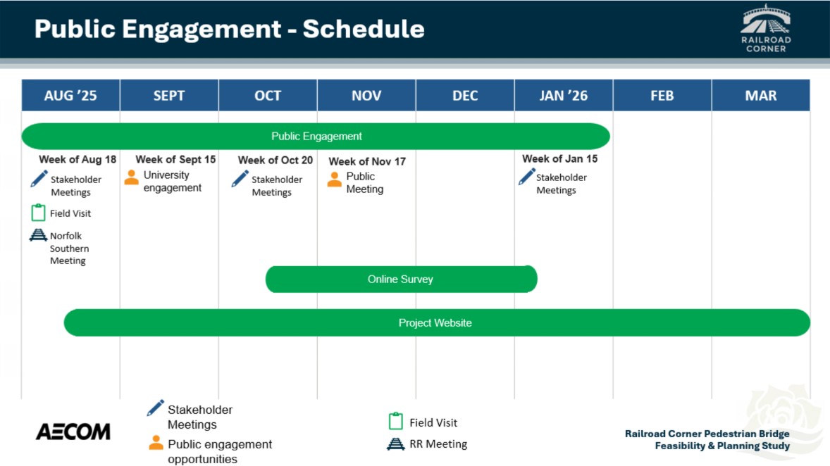Railroad Corner has historically been a dividing point between the universities and the downtown business district. The bridge and associated improvements will help unify the city, enhance mobility, and support economic revitalization efforts.